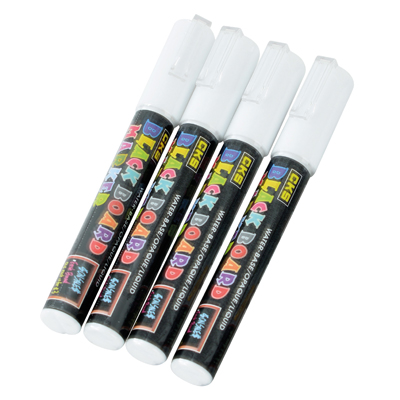Marqueurs craies pointe biseauté - Blanc - Pointe biseautée de 2 à 6 mm - Pqt de 4